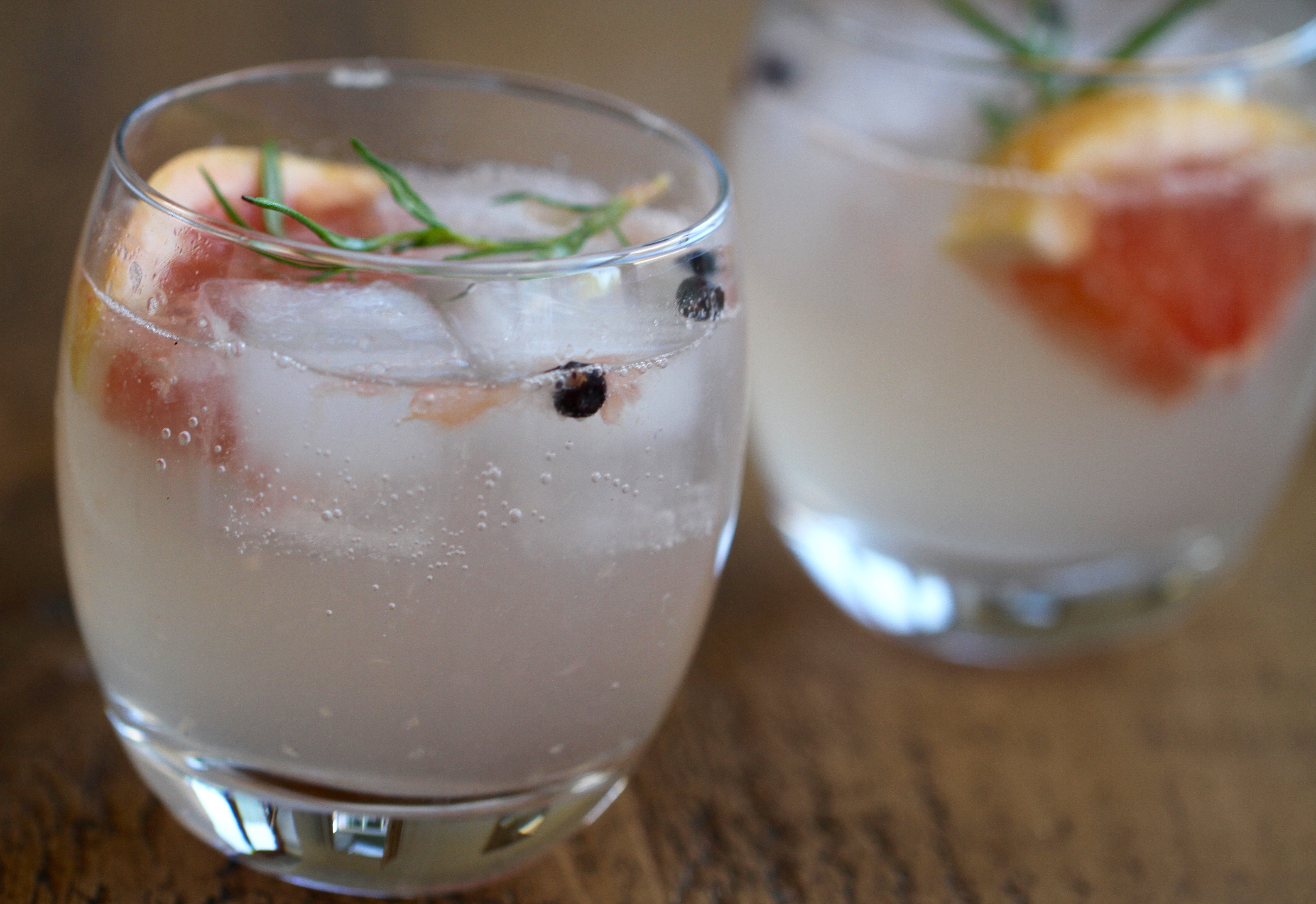 - Add the gin, elderflower liqueur, grapefruit juice and 3 or 4 ice cubes to a glass. Top up with the tonic water, stir briefly to combine, and garnish with the grapefruit, juniper berries and rosemary.